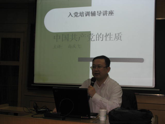 22日哲学系尚庆飞教授向学员们做了关于中国共产党性质的报告,报告以多媒体方式进行,结合社会现实变化对党的要求和党员的要求,进行了针对性探讨,使学员深受启发。