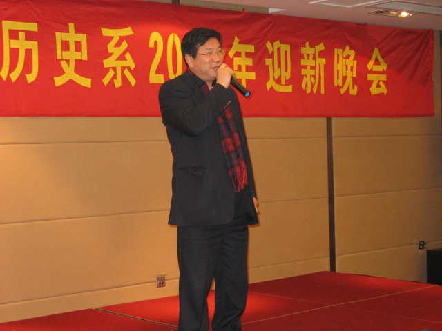 风雨送春归,飞雪迎春到! 新春佳节即将来临,而老师们已提前感受到了节日的氛围。 一月七日晚上,西苑宾馆百合厅里人头攒动,暖意融融,历史系教师欢聚一堂,把酒言欢!历史系教师2009年迎新晚会也在这里举行。 多年来对历史系发展给以大力支持的公司发展委员会施建军董事长,还有多位员工及历史系离退休老同志也应邀参加了晚会。 晚上六点半晚会正式开始。 首先由孙江林书记对过去一年历史系工作进行了简单的总结。