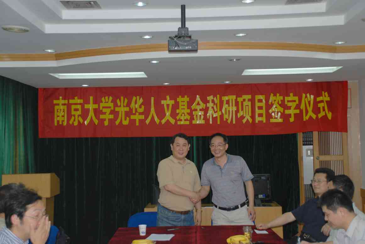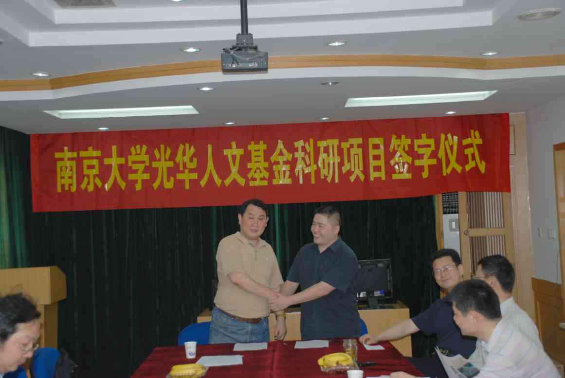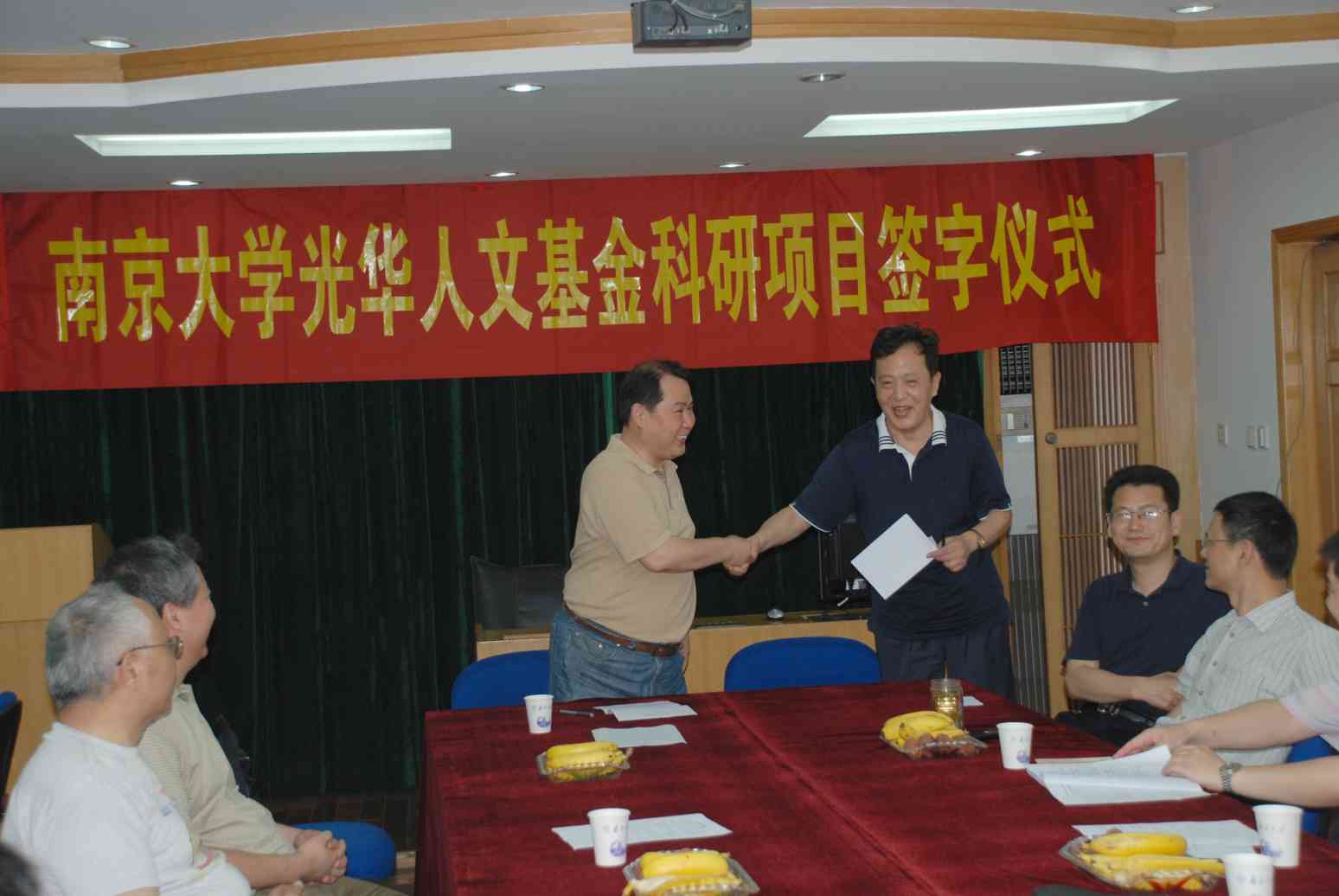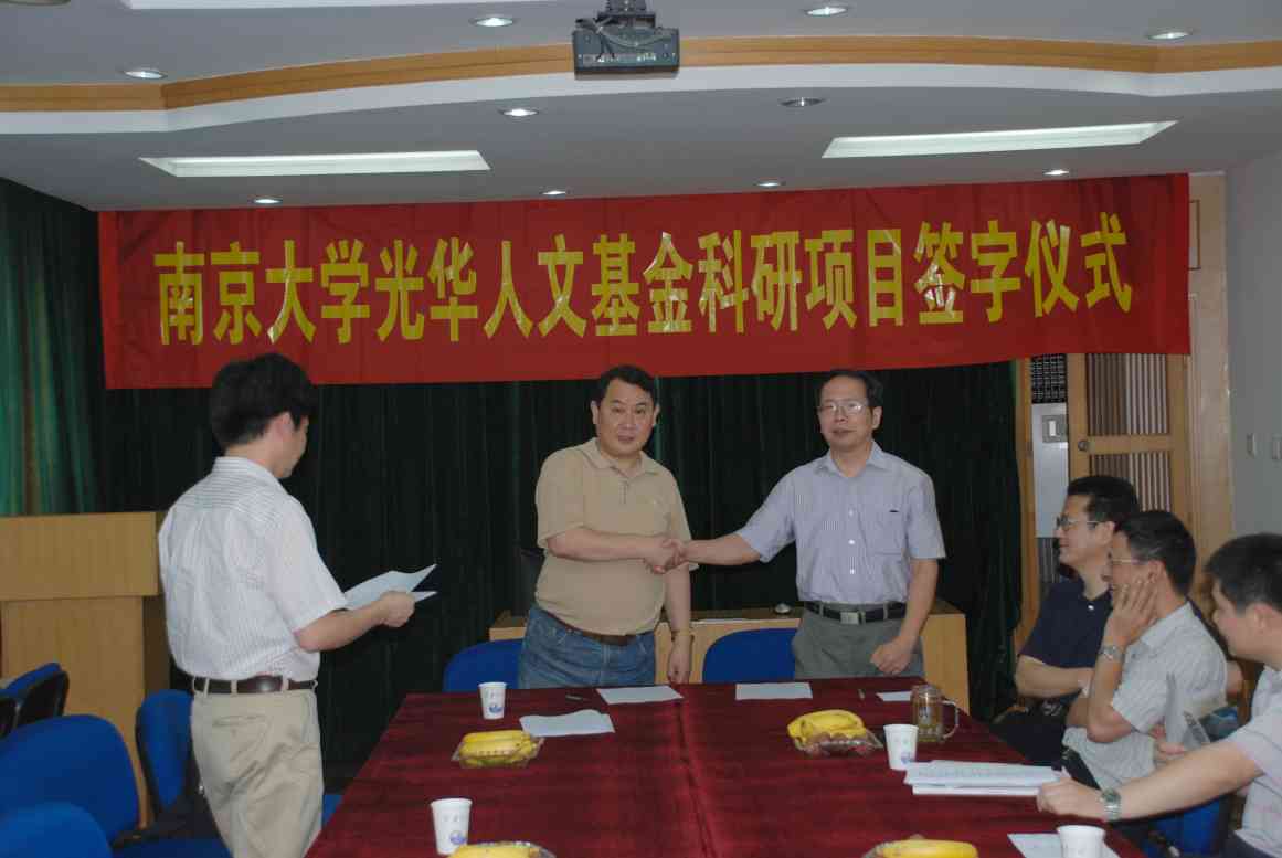 7月17日suncitygroup太阳集团官方网站光华基金项目签约仪式在我系举行,系主任陈谦平教授和项目获得者一一签署合作协议。根据协议,项目获得者在3年的时间里将获6万元人民币的研究经费资助,集体项目3年将获得30万资助。这一举措将极大的激发广大教师的科研热情,大家也纷纷表示将会不辜负系领导和台湾光华基金会的希望,努力作出优异的成绩。出席仪式的还有我系党委书记孙江林、副主任水涛、计秋枫等。