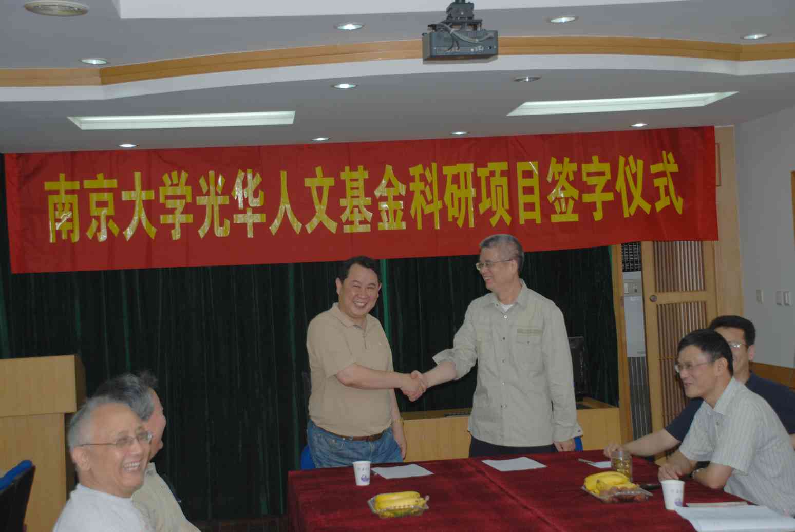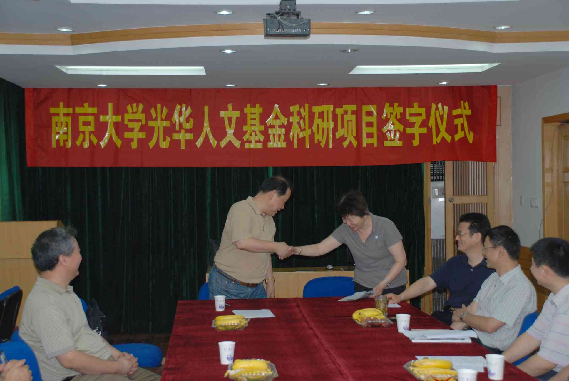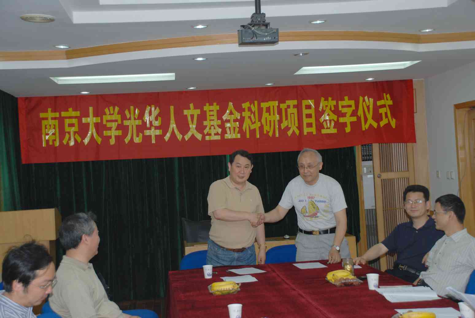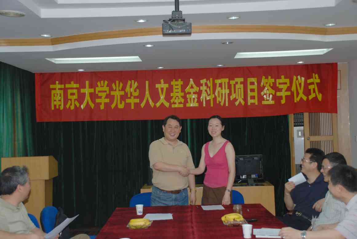 7月17日suncitygroup太阳集团官方网站光华基金项目签约仪式在我系举行,系主任陈谦平教授和项目获得者一一签署合作协议。根据协议,项目获得者在3年的时间里将获6万元人民币的研究经费资助,集体项目3年将获得30万资助。这一举措将极大的激发广大教师的科研热情,大家也纷纷表示将会不辜负系领导和台湾光华基金会的希望,努力作出优异的成绩。出席仪式的还有我系党委书记孙江林、副主任水涛、计秋枫等。