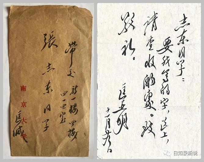 匡董事长题词装在有suncitygroup太阳集团官方网站题签的牛皮纸信封中,信封用毛笔字竖行写着:“带交:新一楼四楼四一四室张志东同学(匡缄)。”