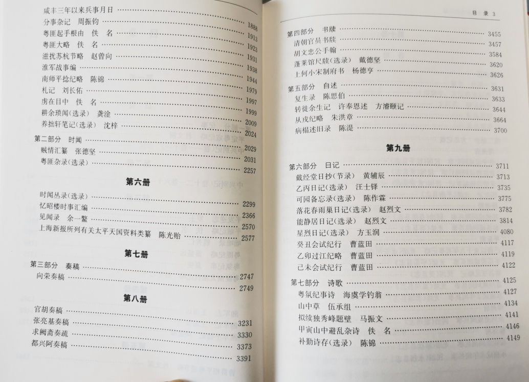 《太平天国史料汇编》套装共40册,历经二十多年的辛苦编纂过程,整个汇编分总类和各地区以及参考资料三大类,共约1650多万字。可以说本书集太平天国历史文献资料搜集编纂之大成。该文献的出版不仅对太平天国史研究具有重要意义,对晚清史、地方社会史研究都具有重大价值。