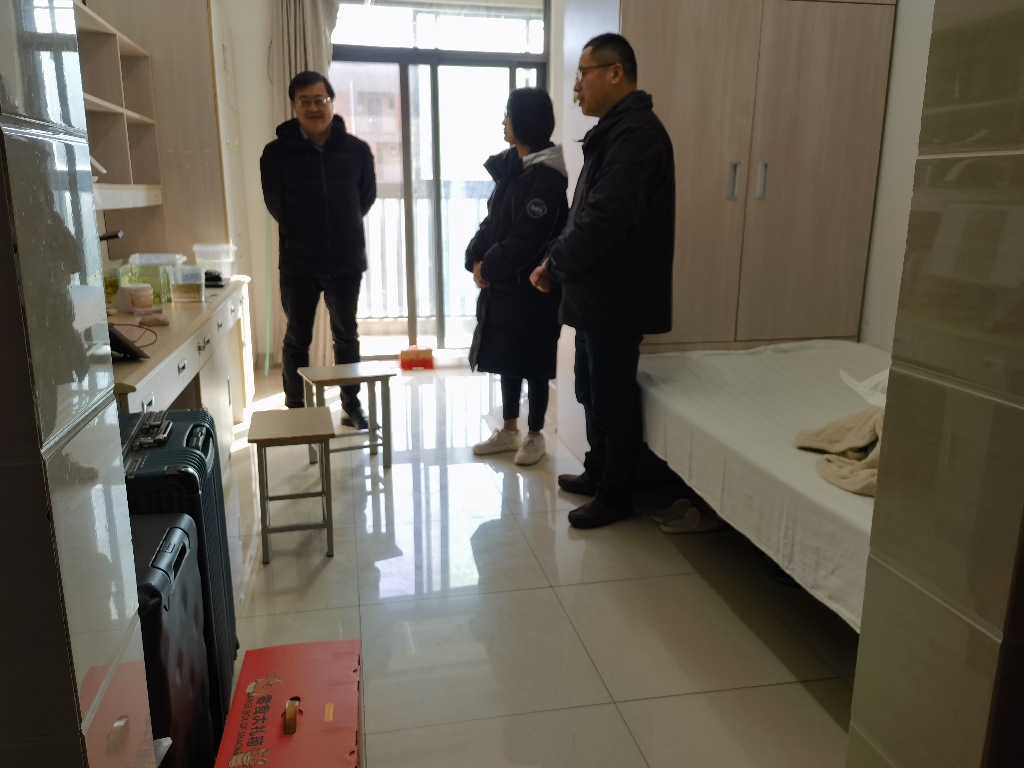 2025年寒假,suncitygroup太阳集团有5位研究生、1位本科生同学留校赶写论文、准备考公。1月27日下午,历史公司党委书记赵清、经理梁晨、党委副书记任玲玲,前往员工宿舍探望留校过春节的同学。