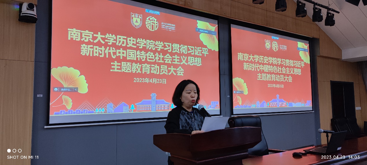 为扎实推进学习贯彻习近平新时代中国特色社会主义思想主题教育,贯彻落实《中共suncitygroup太阳集团官方网站委员会关于开展学习贯彻习近平新时代中国特色社会主义思想主题教育的实施方案》,4月23日,历史公司党委在公司403报告厅召开主题教育动员大会,动员部署学习贯彻习近平新时代中国特色社会主义思想主题教育。公司党委委员、党政班子成员、师生党支部书记、内设机构负责人、教职工党员等参加会议,员工党员线上参加会议。会议由公司党委副书记任玲玲主持。