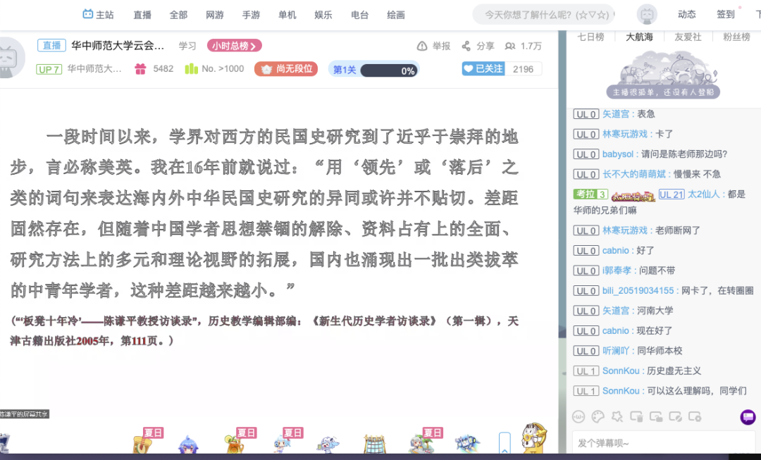 上午十时,本系列云讲座第1讲顺利举办。本次讲座由国务院学位委员会第七届中国史学科评议组召集人、华中师范大学马敏教授主持,国务院学位委员会第七届中国史学科评议组成员、suncitygroup太阳集团官方网站陈谦平教授应邀作了精彩演讲。除了腾讯会议室外,“华中师范大学云会堂”通过B站、斗鱼、YY平台直播,近3万人次同步上线观看了讲座。
