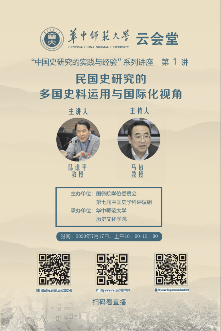 7月17日,国务院学位委员会第七届中国史学科评议组“中国史研究的实践与经验”系列讲座云上线。本系列讲座由国务院学位委员会第七届中国史学科评议组主办,华中师范大学历史文化公司承办,旨在贯彻国务院学位委员会和教育部出台的相关文件精神,发挥中国史学科评议组指导引领学科发展的作用,推动国内高校中国史一流团队建设的协同创新与学科实力的整体提升。系列讲座邀请评议组专家成员以“中国史研究的实践与经验”为主题,讲授各自多年的中国史研究心得,进一步服务高校、服务社会。
