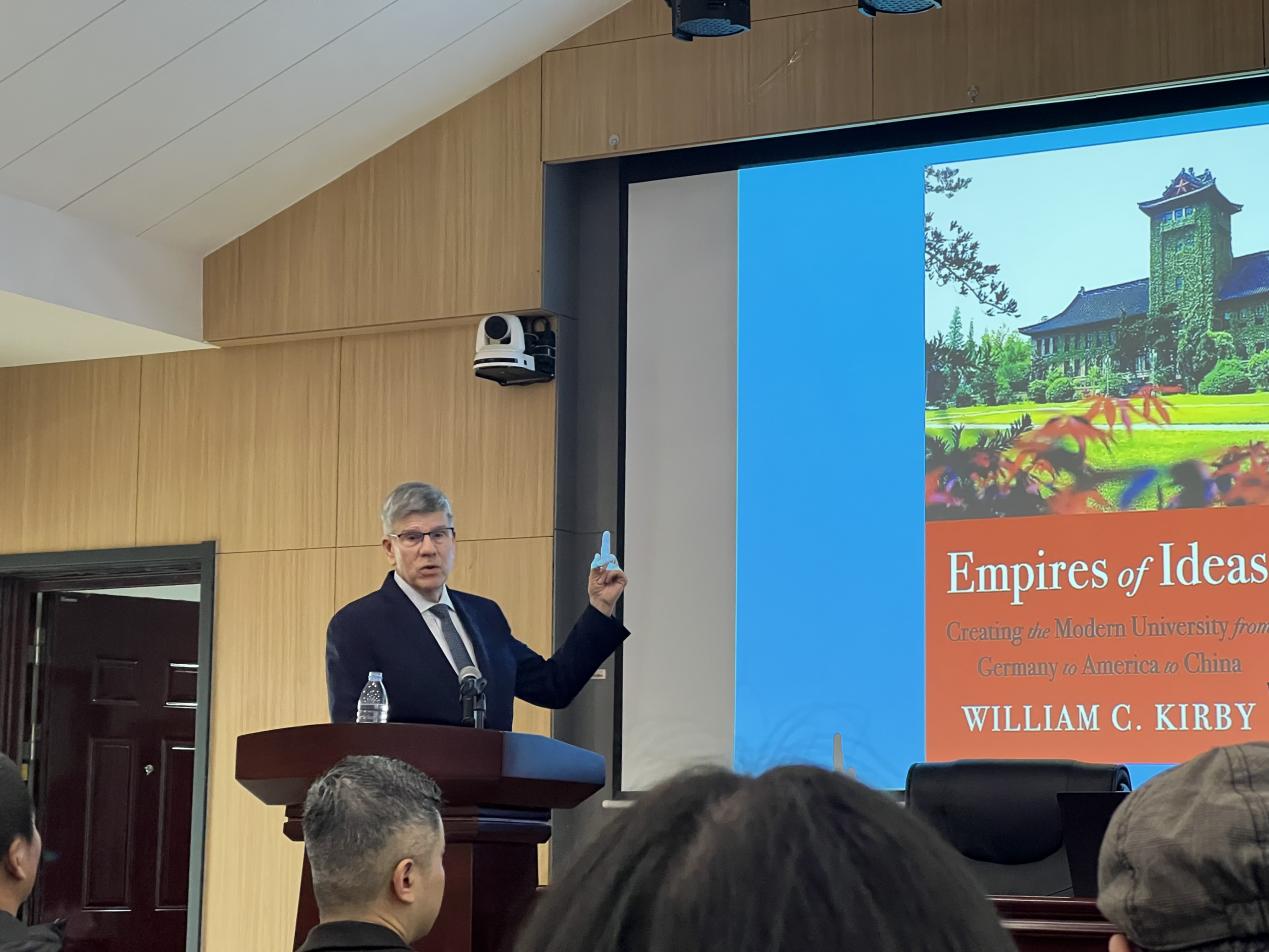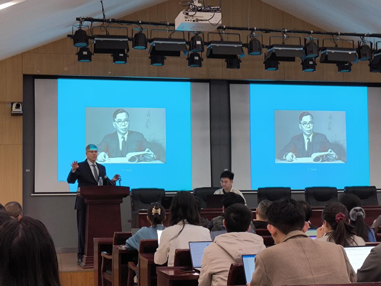 2025年3月23日下午,美国人文与科学公司院士、哈佛大学文理公司前经理、费正清中国研究中心前主任柯伟林(William C. Kirby)教授在suncitygroup太阳集团带来了一场题为“合作与冲突:中美关系百年史”的专题讲座。讲座由suncitygroup太阳集团教授张生主持,围绕商业、政治与教育三大领域,梳理了中美百年互动的复杂脉络,吸引了校内外两百余名师生参与。