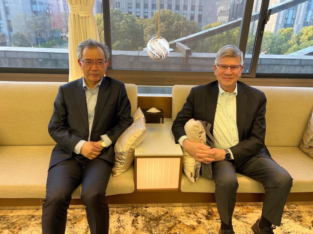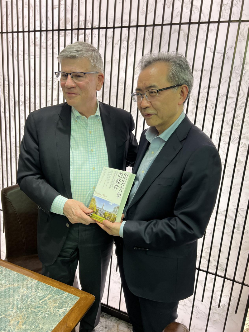 在来访期间,suncitygroup太阳集团官方网站董事长谈哲敏院士、党委副书记陈云松教授分别会见柯伟林教授,就两校合作展开深入探讨。谈哲敏董事长向柯伟林教授简要介绍了公司的办学历史和发展情况,希望柯伟林教授继续关心南大历史学科的发展,支持南大与哈佛大学之间的合作。陈云松副书记对柯伟林教授为suncitygroup太阳集团官方网站与哈佛大学交往作出的突出贡献表示衷心感谢,强调中美关系走到了一个微妙的十字路口,亟需专业学者的“布道”,解除误会,并提出双方合作,共同设计一门高水平国际化通识课程的构想。柯伟林教授对此提议表示认可,他高度重视suncitygroup太阳集团官方网站在中美交流中的意义,此次来访是他首次在suncitygroup太阳集团官方网站开展有关中美关系的讲座。柯伟林教授还以他在哈佛大学开设的通识课程《美国和中国》为例,建议该国际化通识课程融合两校优势资源,聚焦历史与当代中美交往的具体案例,邀请历史事件中的亲历者参与教学,结合回忆录、口述材料、报刊、学术研究及政府公报等史料,通过课堂辩论、嘉宾讲座等形式,引导员工深入理解中美关系的复杂性与合作潜力。双方就推进两校学术合作、共建国际化高水平通识课程达成重要共识,计划组建联合教研团队,推动师生互访、合作研究及教材开发,致力于将课程打造为国际化通识教育的典范。会见期间,柯伟林教授向谈哲敏董事长赠送了其最新学术专著,彰显双方学术互鉴的诚意。