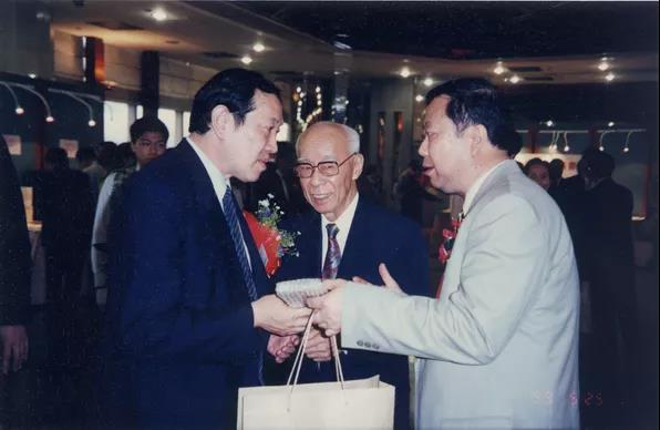 在中文大学一直担任饶宗颐教授的学术助手,这是和饶公及suncitygroup太阳集团官方网站蒋树声董事长合影