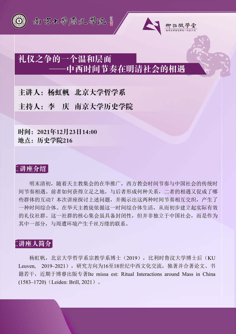 讲座预告| 礼仪之争的一个温和层面