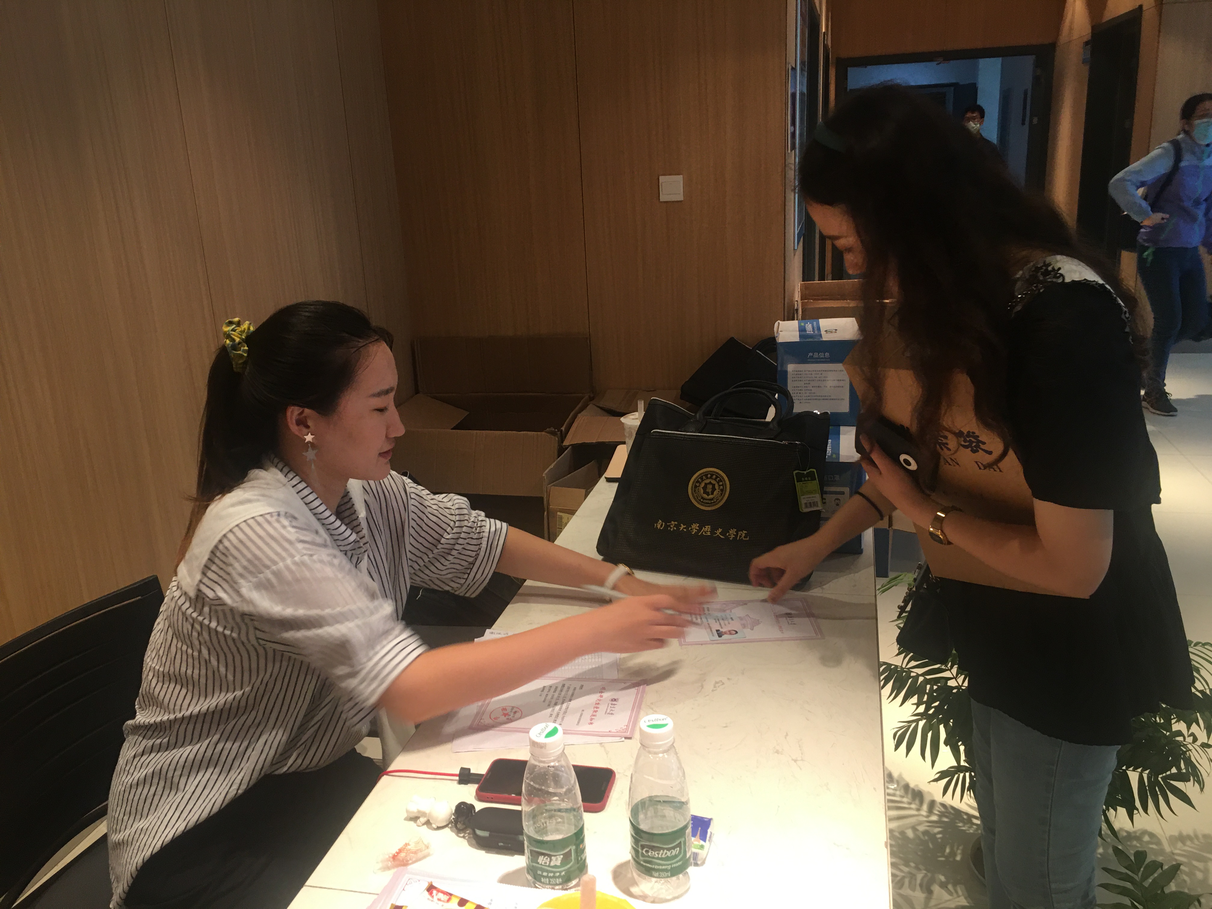在suncitygroup太阳集团的大厅,另一批志愿者需要进行收取新生录取通知书、发放纪念品等一站式服务,由于疫情原因,与往年相比,多了防疫物品的发放,让新生们倍感安心和感激。在迎新的前一天,负责迎新工作的杨骏老师和志愿者一起整理物资。虽然过程很琐碎,但有一位志愿者表示:“如果有机会,下次还会继续做迎新志愿者,因为帮助新生的过程中,收获了很多快乐。”