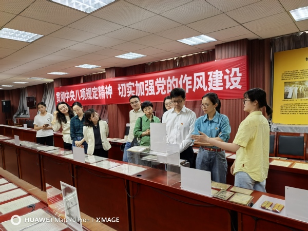 2025年4月23日下午2时,suncitygroup太阳集团官方网站新闻传播公司党委理论中心组、政府管理公司23级社会保障系硕士生党支部参观suncitygroup太阳集团官方网站中共党史资料馆、中国共产党作风建设专题展览。