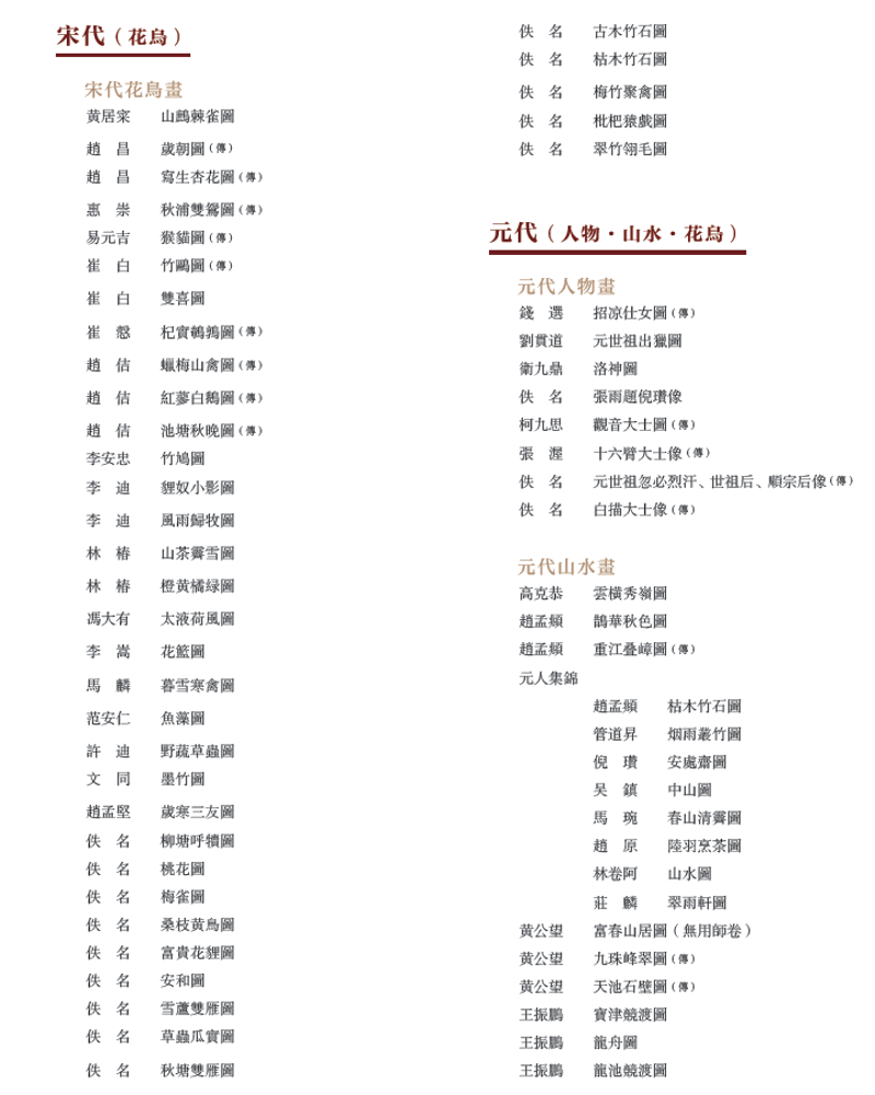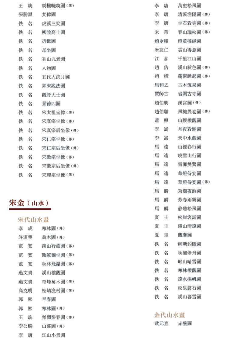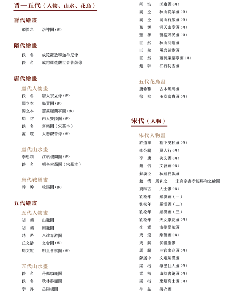 本书保留了藏品的原初定名,并吸纳了多年来的鉴定成果。一些作品经学术研究可能为后世摹本或画家存疑,其作品名后加(传)。作品说明中对鉴定意见也多做扼要介绍。