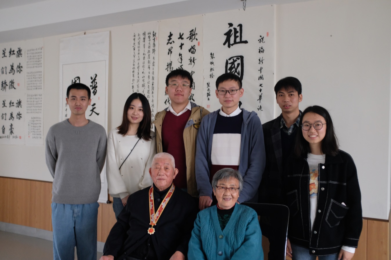 为庆祝新中国成立70周年,响应党中央开展第二批"不忘初心,牢记使命"主题教育活动号召,深入学习贯彻胡金波书记在suncitygroup太阳集团官方网站"不忘初心、牢记使命"主题教育动员大会上的重要讲话精神,11月17日,suncitygroup太阳集团2018级中国史硕士生党支部前往养老院,拜访了荣获中共中央国务院、中央军委颁发的"庆祝中华人民共和国成立七十周年纪念章"的姜平教授。