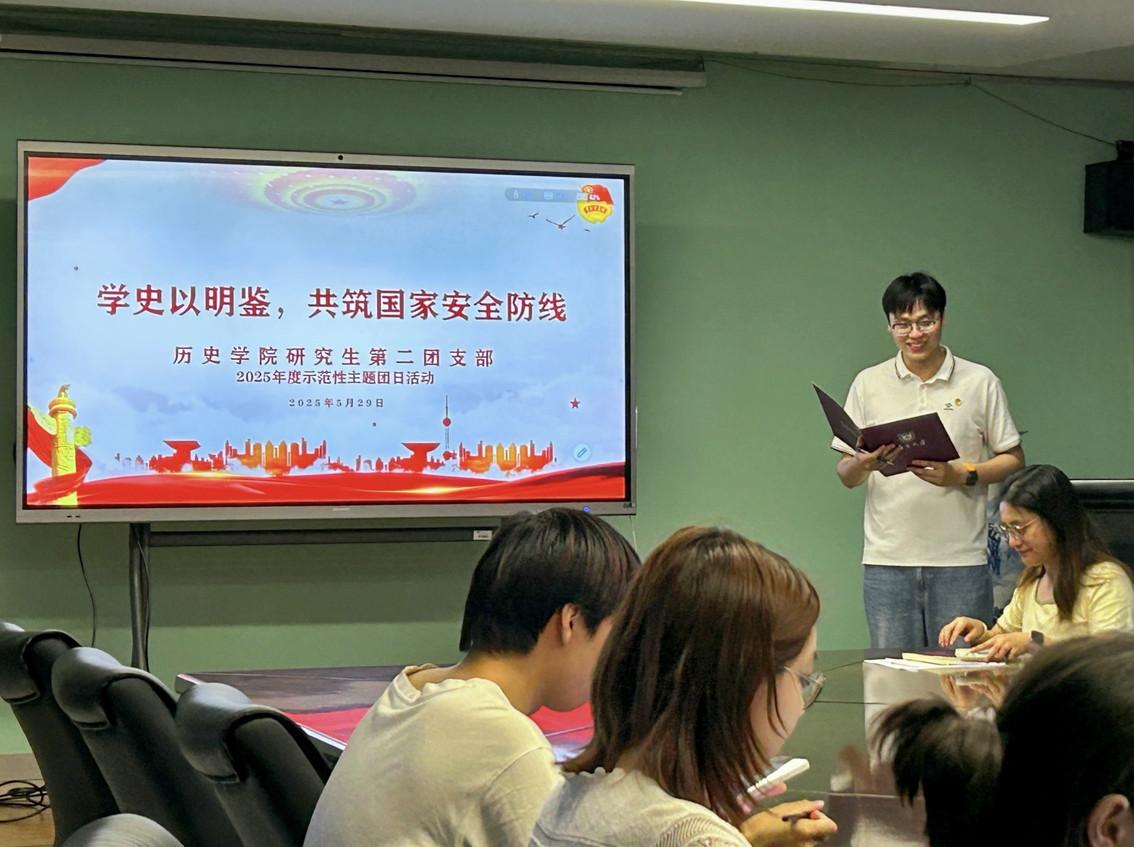 为深入贯彻落实习近平总书记关于加强国家安全教育的重要指示批示精神,贯彻落实总体国家安全观,积极响应“全民国家安全教育,走深走实十周年”宣传主题,提升青年学子的国家安全意识,践行青年责任与担当,5月29日晚,suncitygroup太阳集团研究生第二团支部于大美楼223会议室开展“学史以明鉴,共筑国家安全防线”主题示范性团日活动。suncitygroup太阳集团团委副书记、研究生辅导员王恩惠出席,活动由研究生第二团支部团支书、2024级硕士研究生苏豪主持。