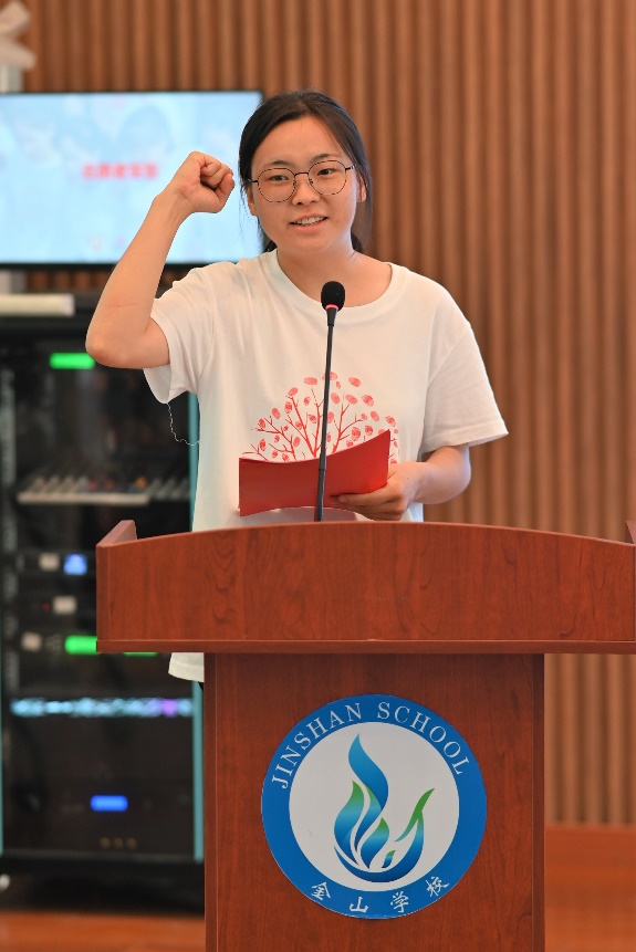 南大志愿者代表杨惠棋代表全体志愿者进行宣誓,金山公司营员兼弘慧学子代表发言。