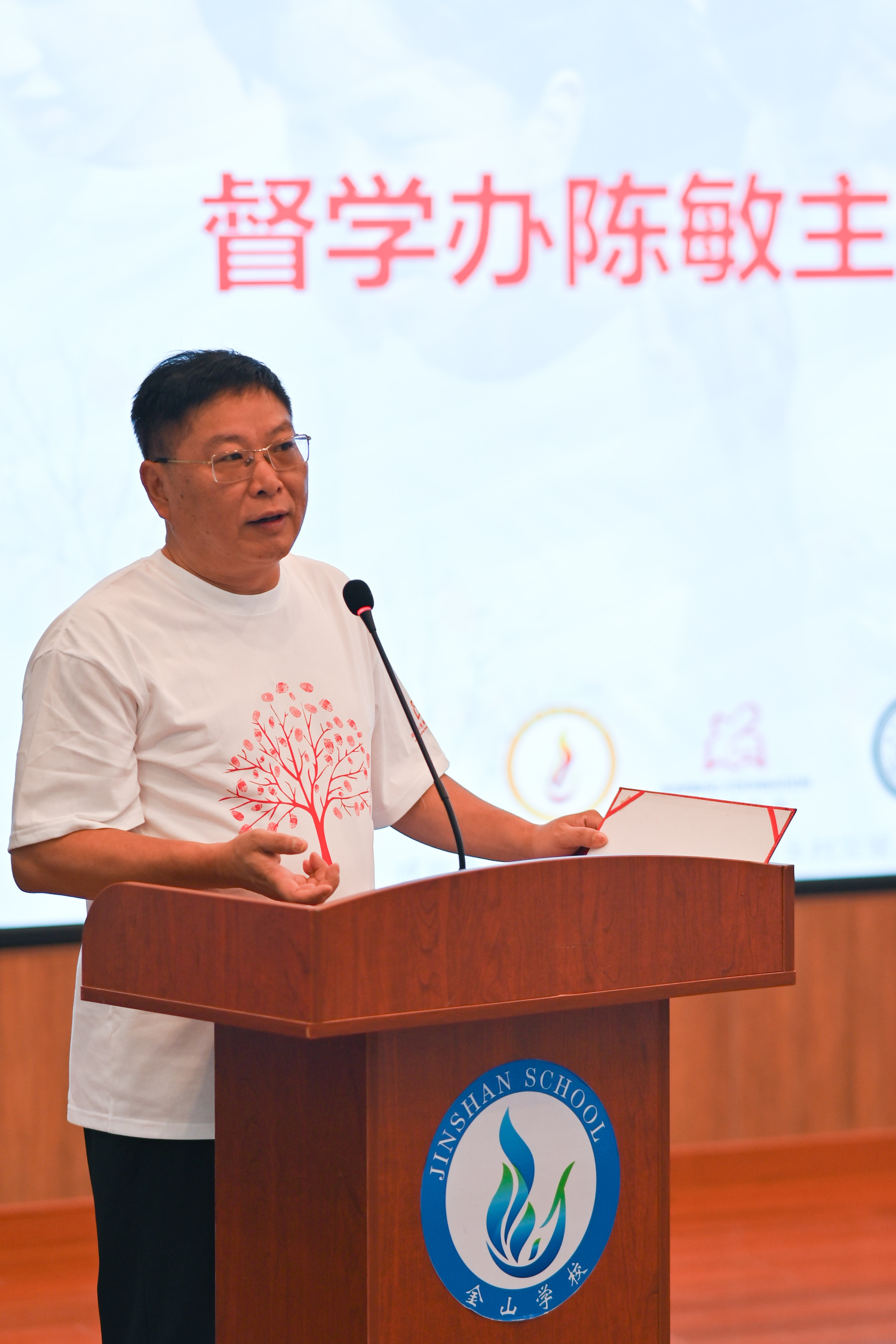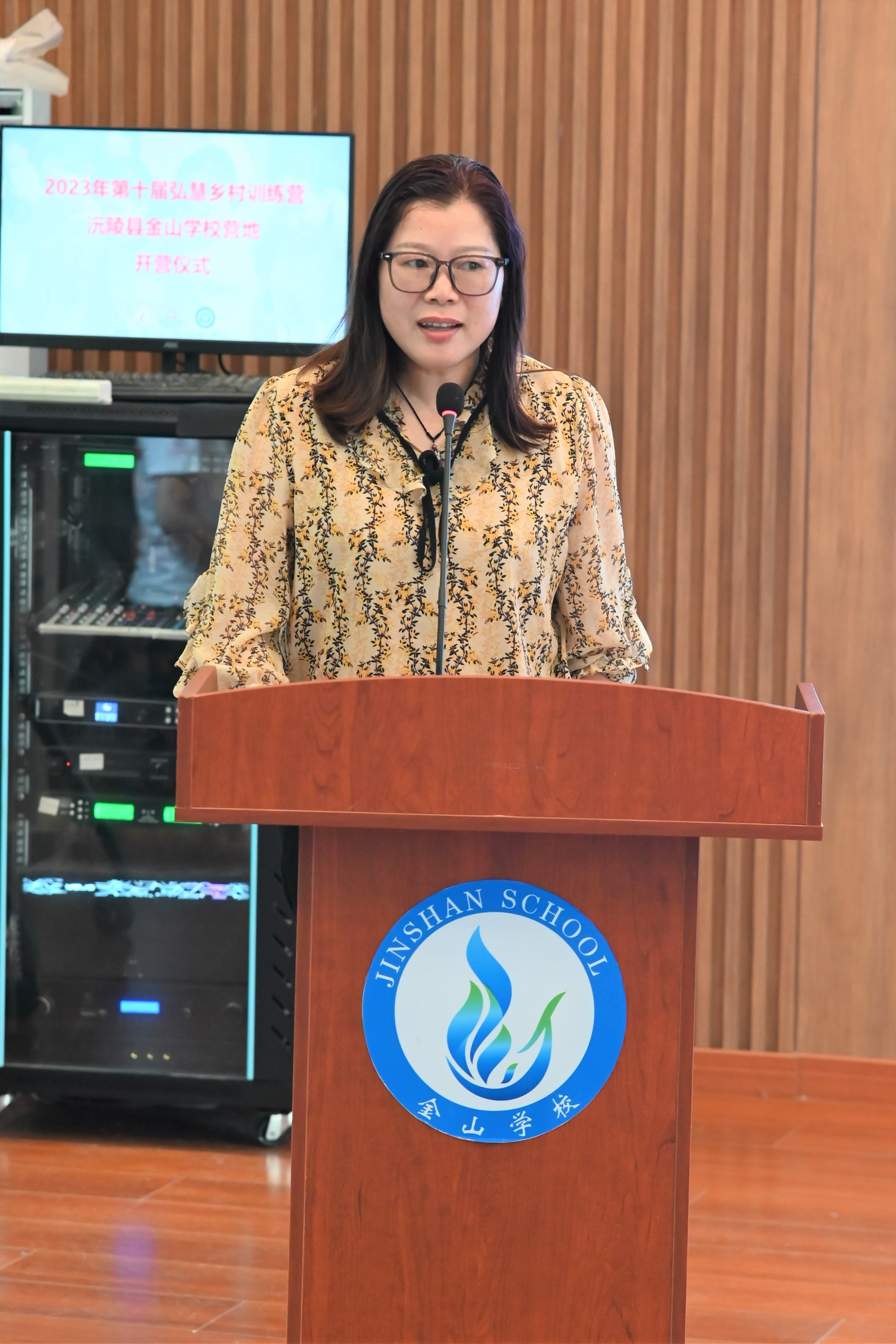 金山公司向明珠副董事长为训练营的前期准备提供了细致的关切和鼎力的支持,她在致辞中表达了对于全体训练营营员的祝福与期待,她强调金山学子应互助友爱、尊敬师长、努力学习、快乐生活,也祝愿暑期训练营活动圆满成功。