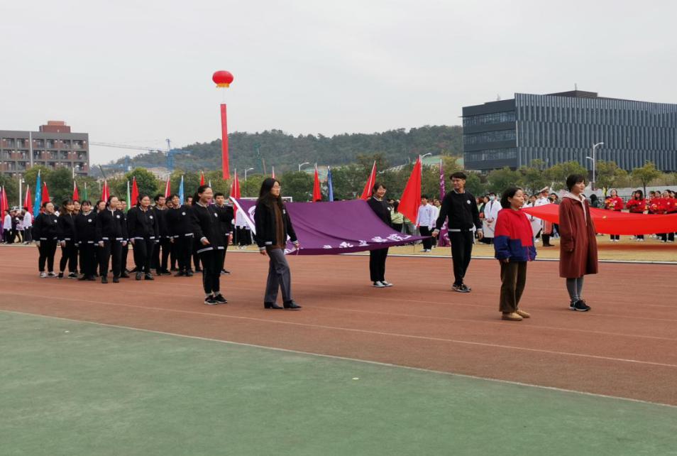 首先当然是我们的入场式。院旗在晨光下熠熠生辉,迎风招展,焕发着沉稳雄伟的气息。入场式正式开始时,suncitygroup太阳集团方队身着黑色院服,伴着飘扬的院旗,迈着整齐的步伐,闯入观众们的视线。