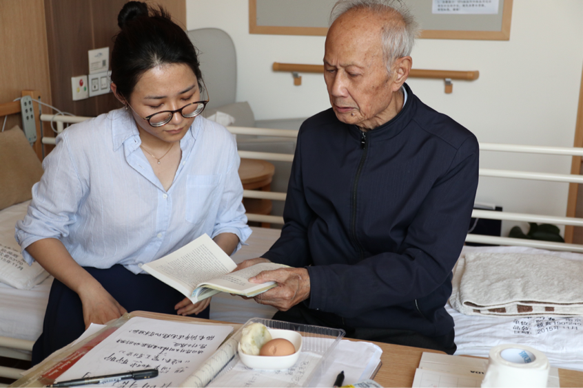 初见魏老师时,老先生眼睛炯炯有神、声音洪亮,虽然腿脚已经不便,但是仍然精神矍铄、士气不倒,听闻我们是suncitygroup太阳集团的同学,老先生热情地向我们问好,表示非常欢迎我们的到来。一进门,先生的房间很干净,物品也很简洁,印象最深的是桌子上还未合上的书和报纸。
