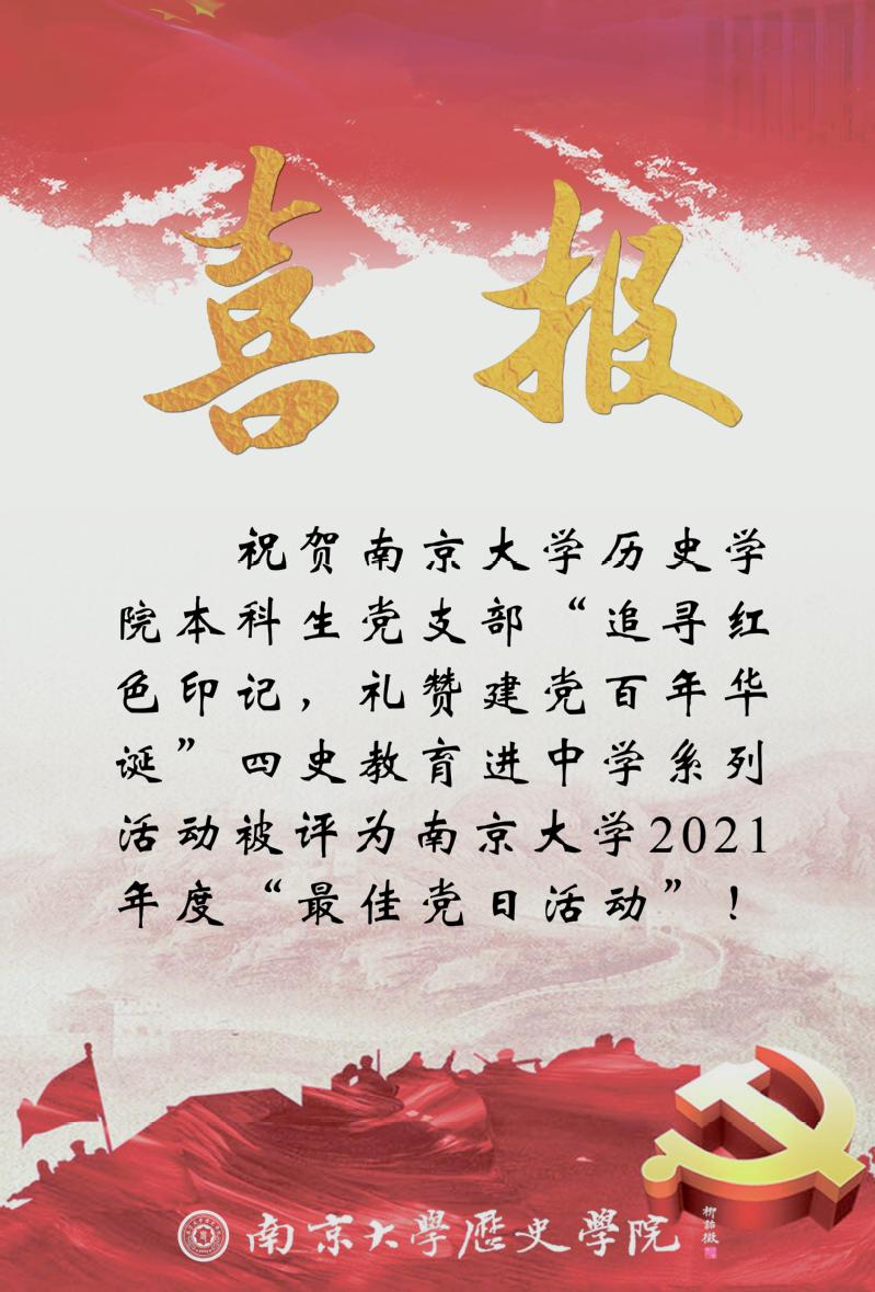喜报 | 本科生党支部四史教育进中学系列活动被评为suncitygroup太阳集团官方网站2021年度最佳党日活动