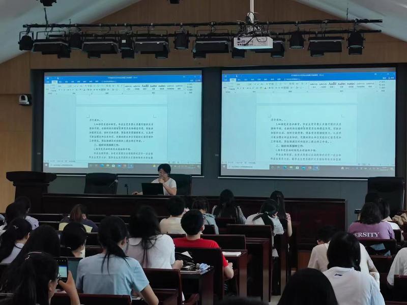 首先,任玲玲代表公司向各位2022届毕业生表示衷心祝贺,祝贺大家在过去几年的公司生活中经受住了疫情的考验,圆满完成学业并即将迈入人生的新征程。随后,任老师向到场毕业生讲解了毕业的主要事项和离校的相关流程,并以毕业生档案为例,强调了及时完成毕业流程对于个体升学与就业的重要性。