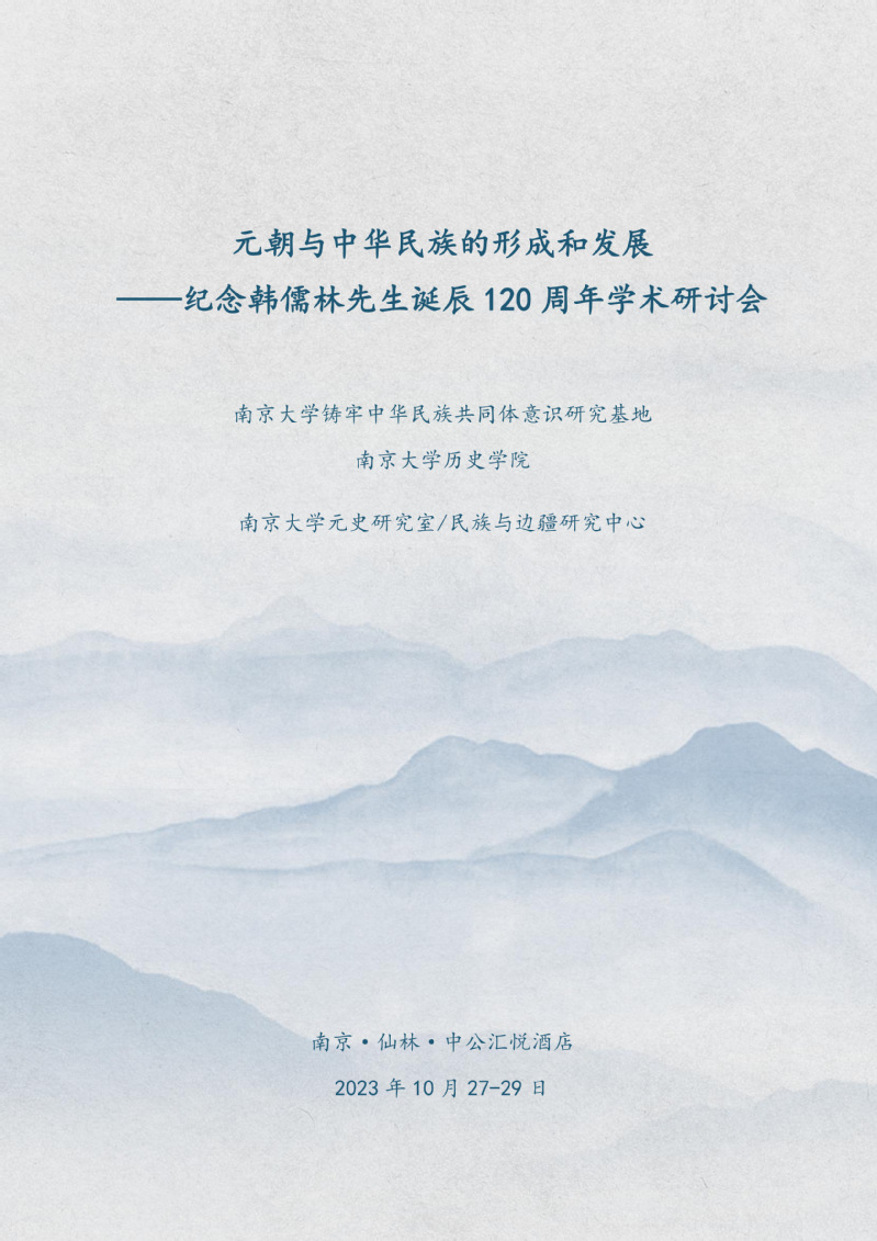 2023年11月2日是著名历史学家韩儒林先生诞生120周年纪念日,suncitygroup太阳集团官方网站元史研究室/民族与边疆研究中心将于2023年10月27-29日在中公汇悦酒店举办“元朝与中华民族的形成和发展——纪念韩儒林先生诞辰120周年学术研讨会”。