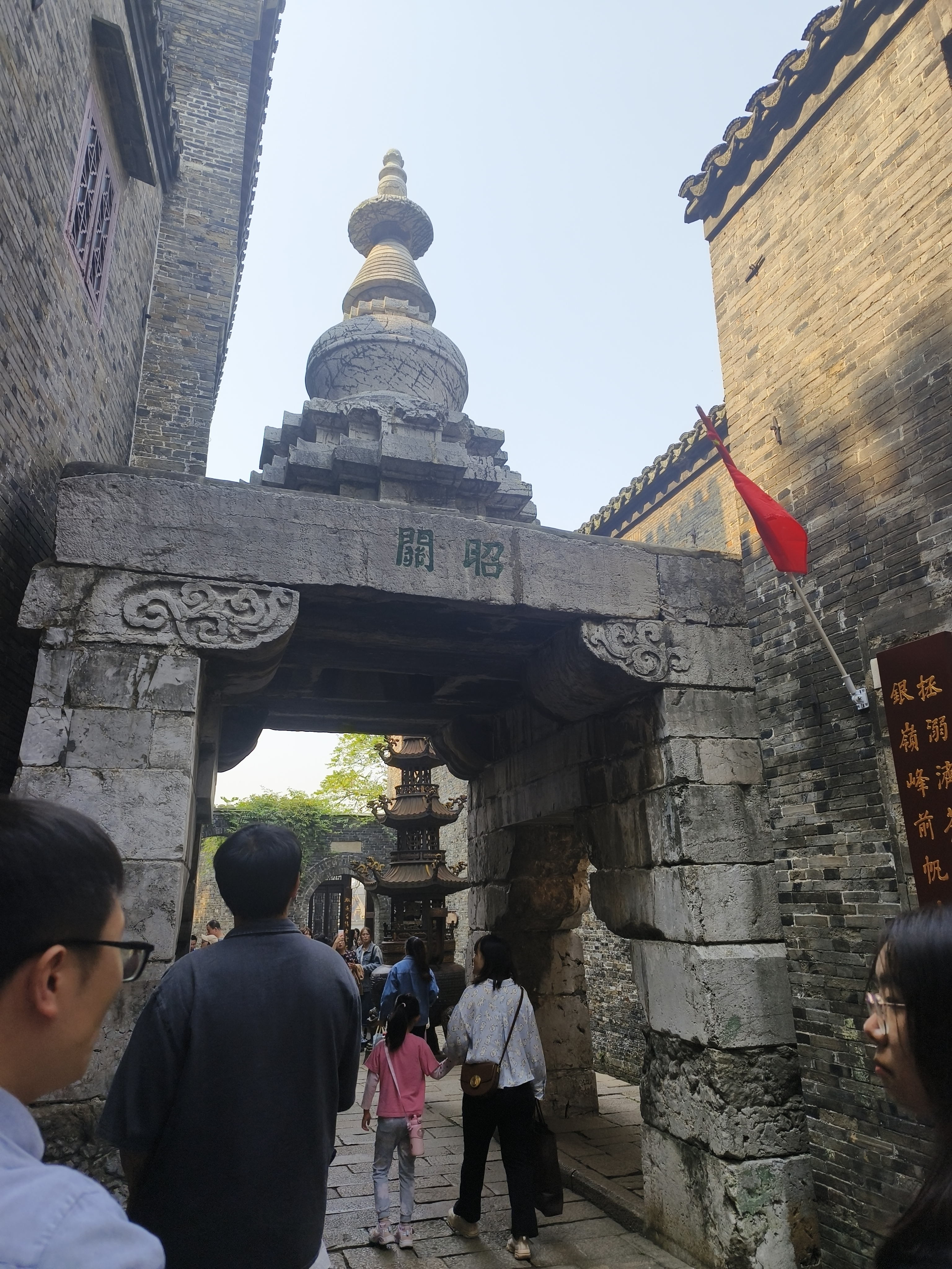 上午11:30,于老师与同学们结束在镇江博物馆的参观学习,前往紧邻博物馆的西津渡古街。我们重点参观了西津渡小码头街上的昭关石塔。于老师提到,这是参照元大都喇嘛塔的样式,在西津渡打造的形制相似的白塔,据传为元武宗时期所建。于老师还向大家详细介绍了曾任镇江路副达鲁花赤的马薛里吉思在镇江的活动,以及他崇信景教,建造十字寺的情况。昭关石塔或许也反映出了元代不同宗教文化的交流与冲突的背景。