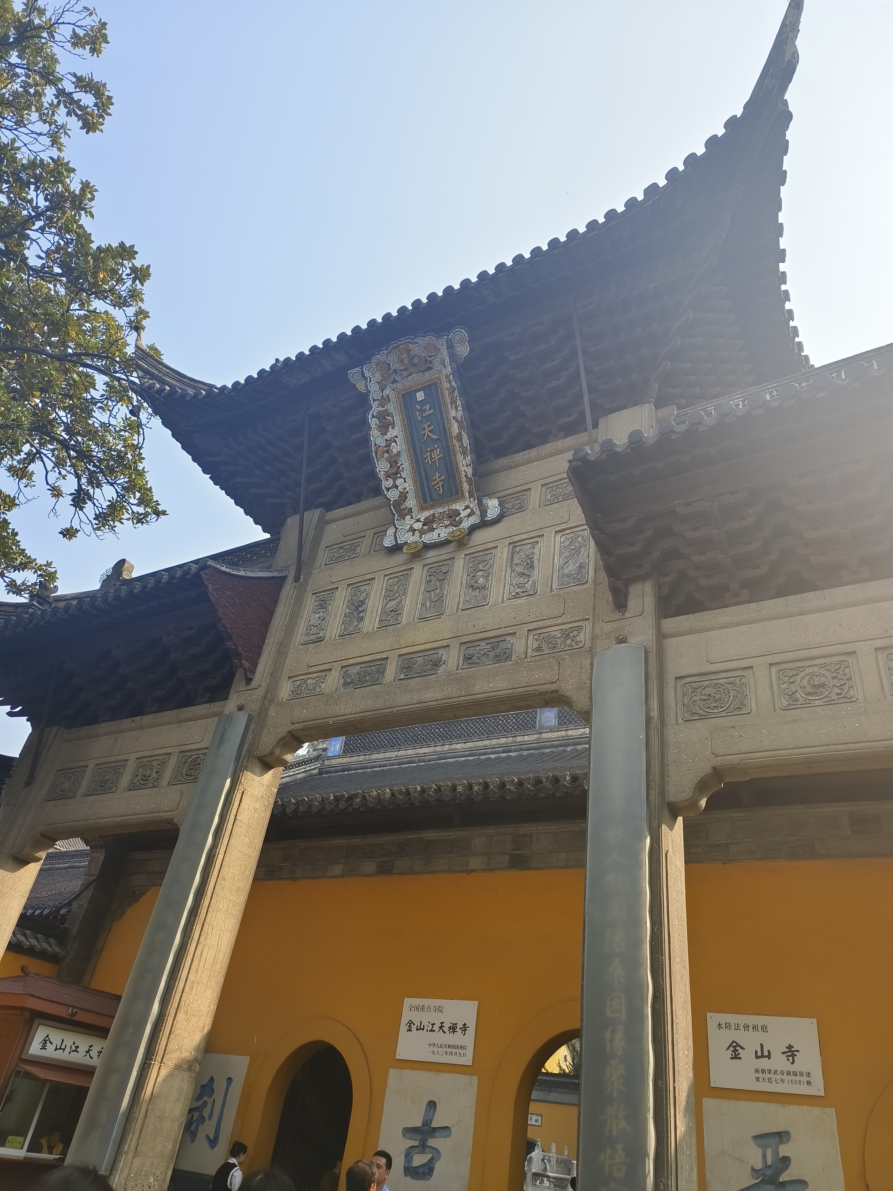 10月15日早9:00,用过早餐后,师生乘车抵达金山。金山原是屹立于长江中流的一个岛屿,有“江心一朵美芙蓉”之称誉。水漫金山的故事耳熟能详,白娘子的传说为这里增添了诸多传奇色彩。走进园区,绿树成荫,两列风铃叮当作响,有山水寺宇,亭台楼阁,江南历史与文化独特而清新的馥郁扑面而来。