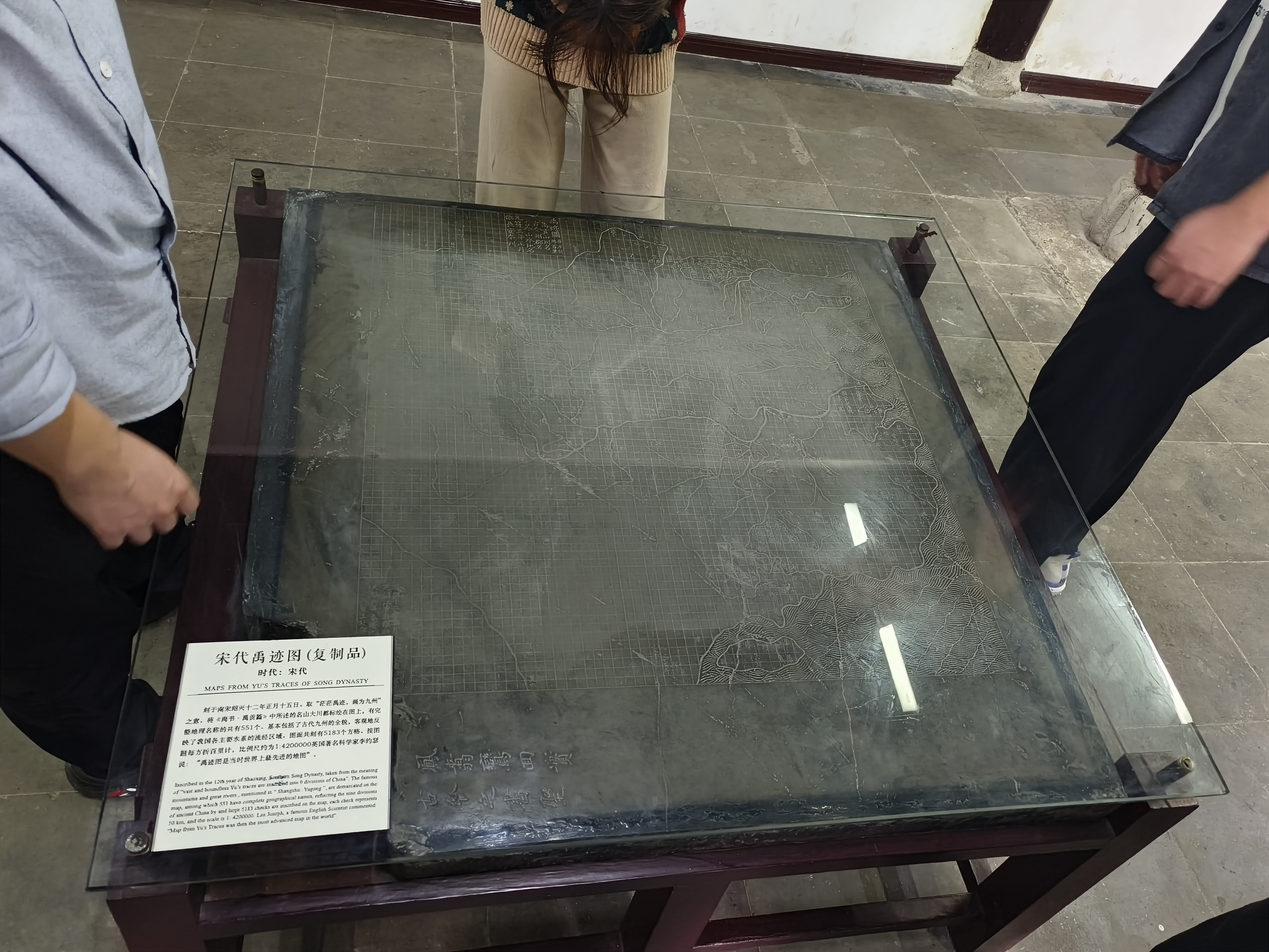 焦山碑林还陈列着一方《禹迹图》,也是复制品,碑上细细刻画了中国的大致水系。于老师向大家介绍,还有一块在西安碑林,该图在中国地图学史上地位重要,或许与唐代贾耽的《海内华夷图》有关。
