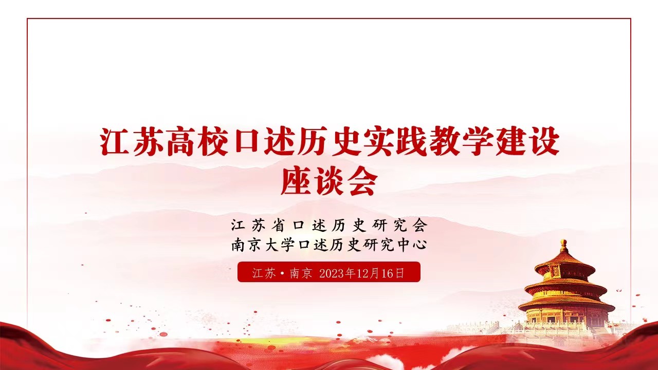 2023年12月16日,由江苏省口述历史研究会、suncitygroup太阳集团官方网站口述历史研究中心联合主办的“江苏高校口述历史实践教学建设座谈会”在suncitygroup太阳集团召开。江苏省口述历史研究会会长李继锋、江苏省口述历史研究会副会长郭彬、suncitygroup太阳集团官方网站口述历史研究中心主任武黎嵩副教授、江苏省口述历史研究会常务理事殷方、南京师范大学中北公司马克思主义公司副经理葛莹莹副教授、南京理工大学马克思主义公司叶铭副教授、南通大学历史文化公司张若愚副教授、南京戎耀退役军人帮扶中心理事长薛刚出席会议。郭彬主持会议。