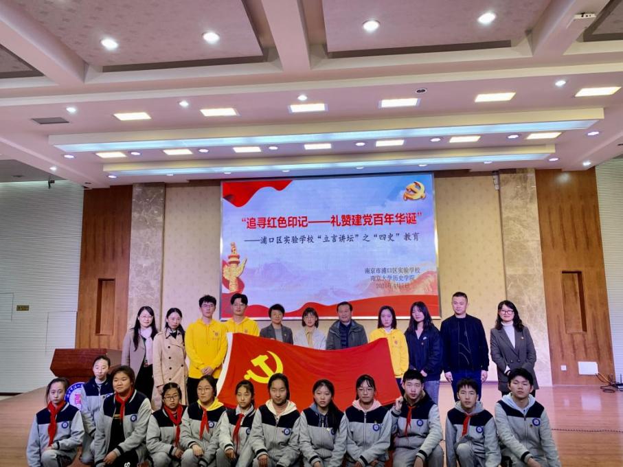 2021年4月7日,作为此次系列活动重要内容的“党史宣讲进中学”首场主题活动走进了南京市浦口区实验公司,为青少年讲述党史和国史,传承红色基因,培植爱国情怀。