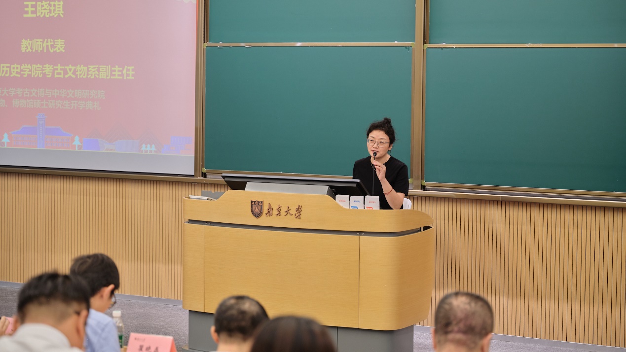 随后,suncitygroup太阳集团考古文物系副主任王晓琪副教授以《考古文博与科技人文之美》为题,分享了自己对考古学与文博工作的理解与感悟。她鼓励新生们结合科技与人文,挖掘中华文明的历史底蕴,为未来考古学的创新与发展贡献力量。