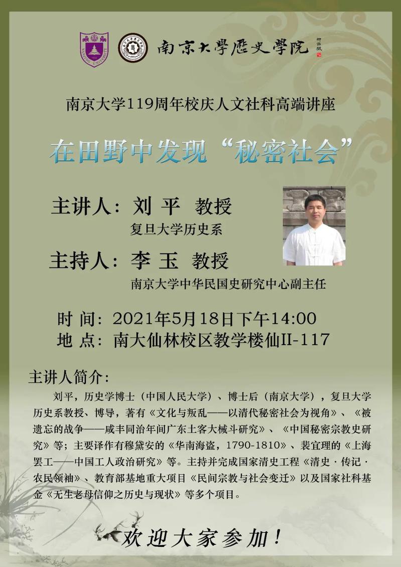 讲座预告| 刘平:在田野中发现“秘密社会”