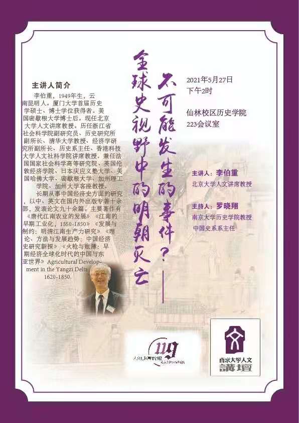 讲座预告| 李伯重:不可能发生的事件?——全球史视野中的明朝灭亡