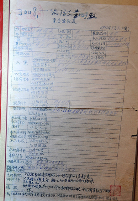 延安整风运动中的《党员登记表》 (王红兵 摄影)