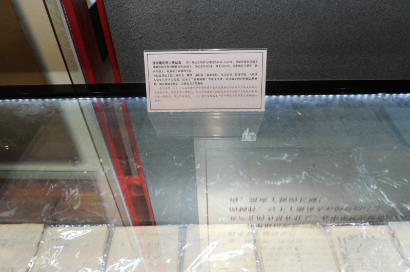 鲁南地区3200多位烈士登记表。登记表共600余份,填写时间是1948至1949年,登记的是抗日战争以及解放战争期间牺牲的军民,其中既有八路军、新四军战士,也有地方武装的民兵,如铁道游击队队员等。登记表登记了烈士的姓名、籍贯、通信处、家族成份、本人出身、经济状况、入党年月等个人情况,记录了“何种英模”等战斗事迹,还详载了何时何地如何牺牲、现安葬地及标志、安葬负责人等事项。有一份表格记载了一位独立营战士是如何牺牲的,上写:被日军活埋。曹大臣说,这些泛黄的登记表反映了鲁南解放区的历史演变,也承载着一份沉重的历史记忆。