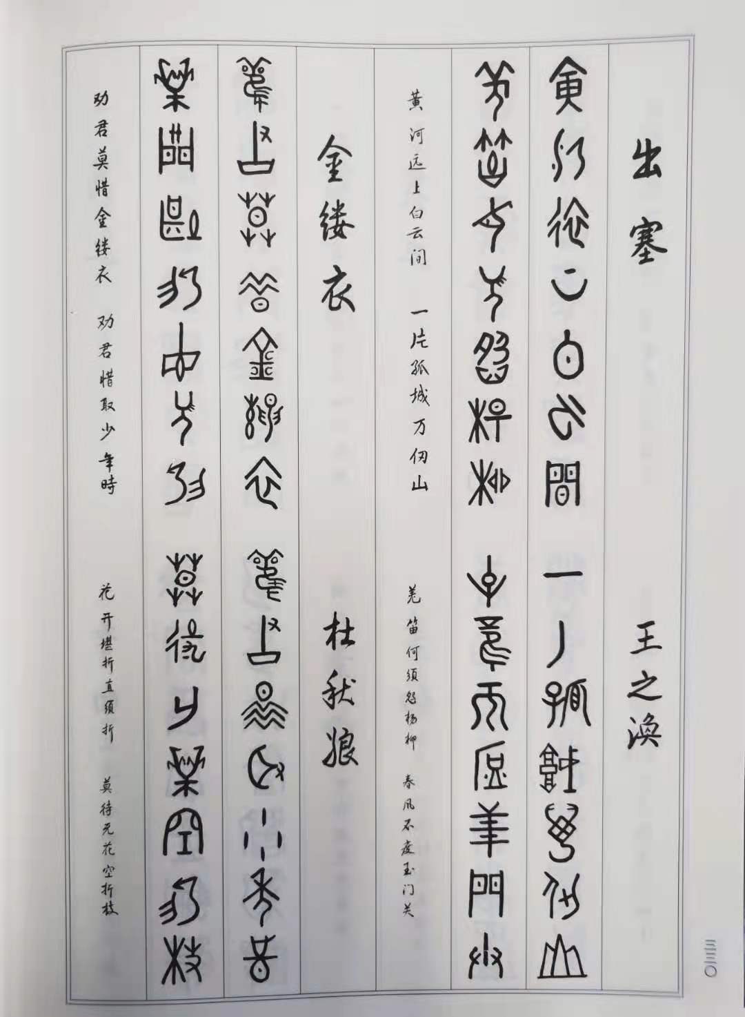 甲骨文出土已有120余年,据统计约有1.5万余字,但学界目前已识读出的甲骨文仅有3500多字,其中包括不少重复字。这一识读量远远无法满足唐诗三百首的字数需要。本书借用了已经正式出版的书籍报刊中出现的甲骨文新字,其余字则由作者参考金文、《说文解字》等文献资料,根据汉字的演变规律合理推演而成。