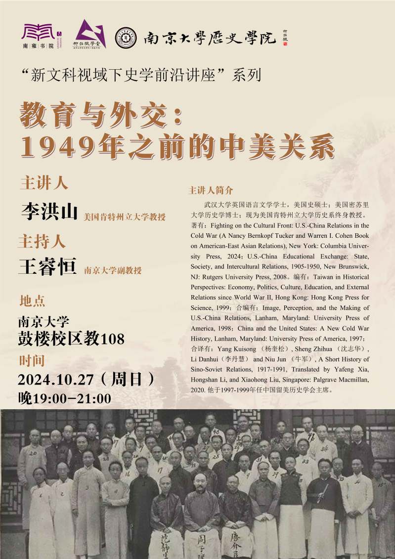讲座预告 | 教育与外交:1949年之前的中美关系